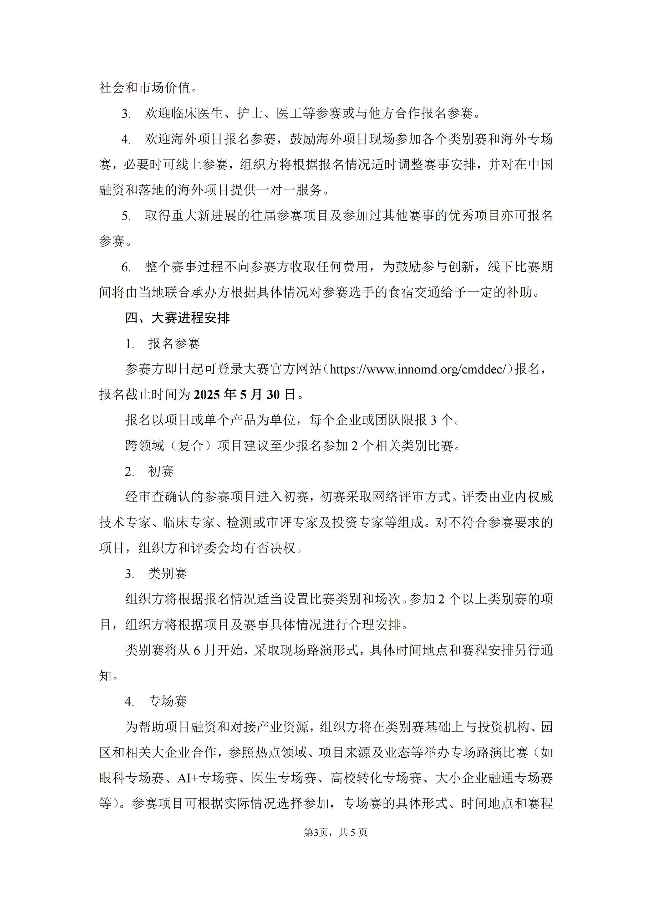 参赛方即日起可登录大赛官方网站(医疗器械创新网网://e-qianjiu.com/cmddec/)报名,报名截止时间为2025年5月30日。